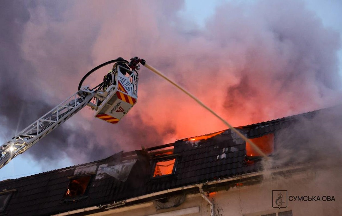 Російські війська завдали ударів по готелю в центрі Сум. Під час ліквідації пожежі відбулася повторна атака. Про це повідомила пресслужба ДСНС у п’ятницю, 27 лютого. “Влучання сталося в центральній частині міста. Рятувальники евакуювали 50 громадян. Під час гасіння пожежі росіни завдали повторного удару по рятувальниках. Ніхто з особового складу не постраждав”, – йдеться в повідомленні. Наразі пожежу ліквідовано. Відповідні служби працюють над ліквідацією наслідків удару. Голова ОВА Олег Григоров розповів, що сьогодні вранці росіяни ударним дроном поцілили у будівлю в центрі Сум. “Після першого влучання ворог підступно завдав повторного удару – коли на місці вже працювали рятувальники. Людей евакуювали вчасно. Постраждалих немає”, – написав він у Telegram. Навігація записів Генштаб розповів про понад 200 боїв на фронті Нічна дронова атака РФ: є влучання на 14 локаціях
