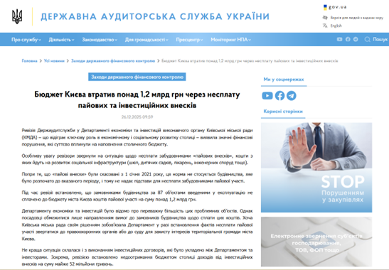 Пройшло понад півтора місяця з моменту гучних обшуків у Департаменті економіки та інвестицій КМДА в справі про розкрадання 1,39 млрд гривень — коштів, яких критично не вистачає на ремонт мостів та інфраструктури столиці. 16 лютого 2026 року правоохоронці гучно завітали до кабінетів ДЕІ у справі про несплату пайової участі до бюджету міста забудовниками десятків ЖК, серед яких «Файна Таун», «Варшавський», «GREAT» та «Liko Grad». Підставами обшуків був висновок Державної служби аудиту, який офіційно підтвердив факт грубих фінансових порушень, допущених при укладенні інвестиційних договорів чиновниками КМДА: директорки ДЕІ Наталії Мельник, її першого заступника В’ячеслава Панченка та заступника Олега Світличного. Виникає логічне запитання: який реальний результат лютневих обшуків? Чому посадовці, які «подарували» забудовникам 1,39 млрд грн, досі залишаються у своїх кріслах? Така пасивність лише підтверджує: схема має серйозне покровительство на рівні керівництва мерії. Без прямого погодження на всіх рівнях жоден директор департаменту не зміг би пробачити забудовникам такі суми. При цьому одна із фірм-фігурантів розслідування – ТОВ «Валентин плюс», пов’язана депутатом-зрадником – Андрієм Деркачем. Звичайні прес-релізи про чергові «перевірки», а на реальні терміни для тих, хто обкрадає місто, вже нікого не цікавлять. Час імітації боротьби з корупцією вичерпано. Якщо за розкрадання майже півтора мільярда гривень ніхто не сяде — це буде прямим доказом того, що закон у столиці працює виключно в інтересах будівельних магнатів. Джерело: https://lnsider.news/firmy-z-orbity-deputata-zradnyka-derkacha-prodovzhuiut-krasty-u-kyievi-miliardy/ Навігація записів Тунель між станціями Тараса Шевченка та Почайна відремонтують за 1,84 млрд